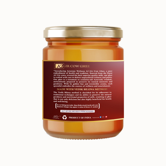 Experience the pure, golden essence of Aeternus Wellness A2 Gir Cow Ghee. Sourced from the milk of indigenous Gir cows, our ghee is meticulously prepared to deliver unmatched taste, aroma, and health benefits. Perfect for those who prioritize quality and authenticity in their diet.