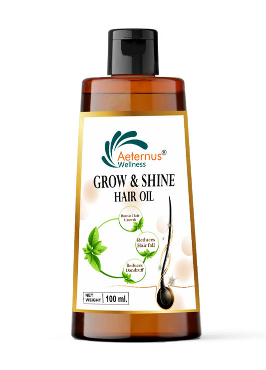 Introducing Aeternus Wellness Grow & Shine Hair Oil – the secret to lush, vibrant locks that radiate health and vitality. Transform your hair care routine with this meticulously crafted blend of nourishing botanicals and potent growth-promoting ingredients, designed to unleash the full potential of your tresses.