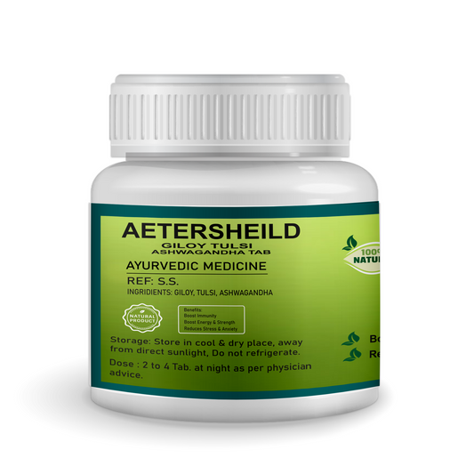 Introducing our AETERSHIELD Tablets, a powerful blend of SIX different incredible herbs known for their numerous health benefits. This carefully crafted herbal supplement combines the goodness of Giloy, Tulsi (Holy Basil), Ashwagandha,